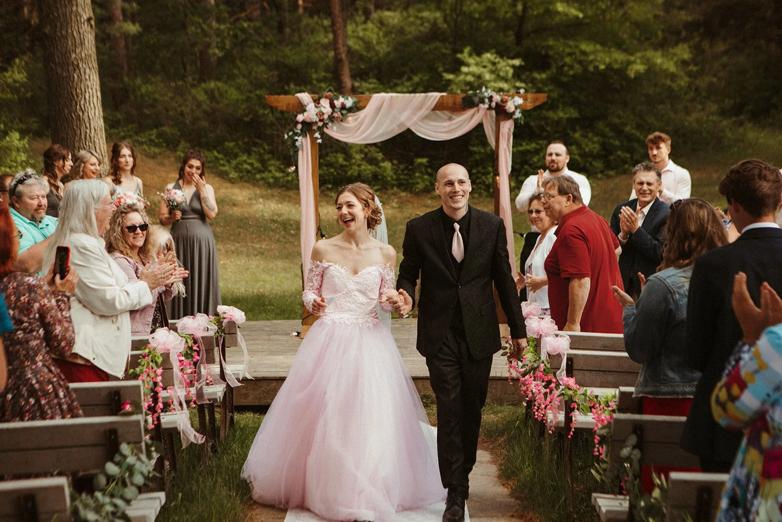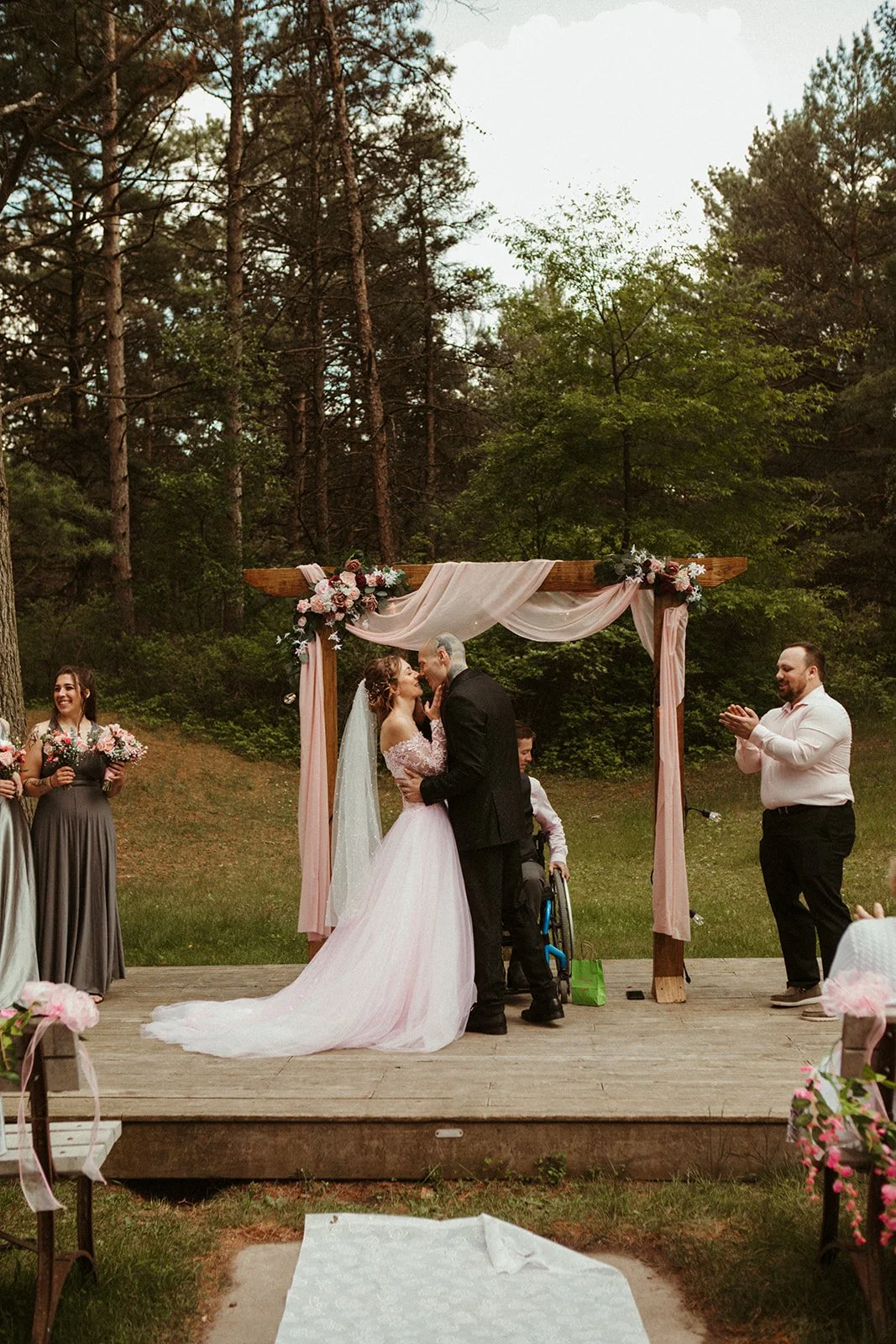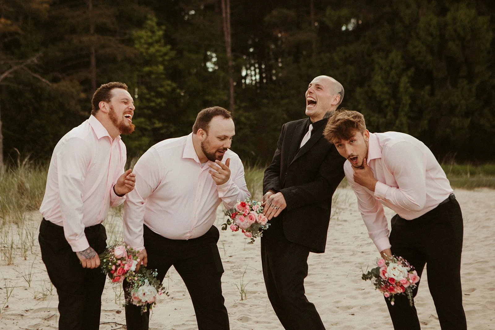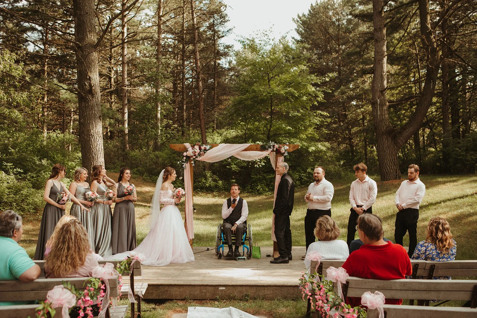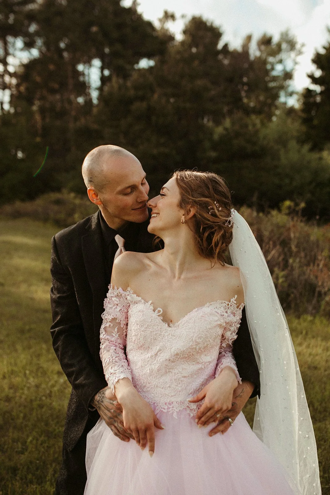 Kohler Andrae is a well-known Wisconsin State Park that features miles of lakeside beach access and beautiful sand dunes, but It’s also a beautiful campground with cozy wood cabins, and I got a taste of that for this wedding. Joey & Jaime kept it simple: A short, intimate afternoon ceremony in the woods, golden hour portraits together, and a picnic-style meal with their closest loved ones. I was only with them for a couple of hours, but it was all we needed.